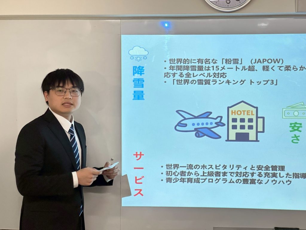 日本スキー場開発様の事業内容や理念について詳しくご紹介いただきました。 - 2週目:課題プレゼンテーション
